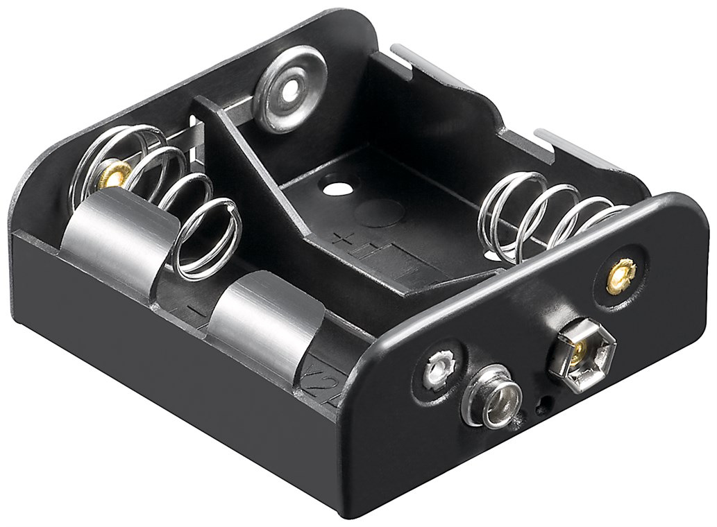 - Der Goobay-Batteriehalter kann in ein batteriebetriebenes Gerät eingebaut oder daran befestigt werden.