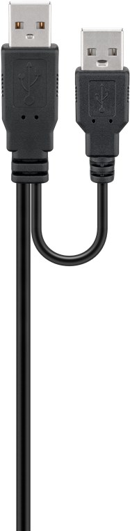 • Mit blauer Betriebs-LED und inkl. fest verbautem Y-Kabel mit 2x USB-A, 1,5 m