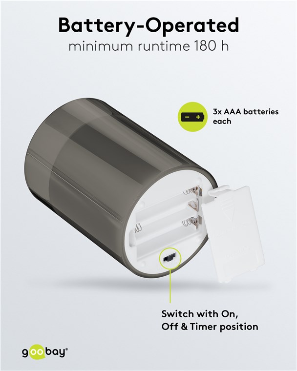 • Mit On-/Off-Schalter und Timerfunktion für ein 6-Stunden-Leuchtintervall (Wiederholung im 24-Stunden-Takt)