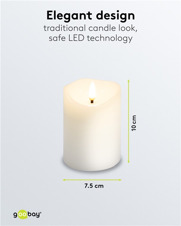 • Maße je Kerze (H x Ø): 10 x 7,5 cm, jede LED-Kerze betrieben mit 3x AAA-Batterien (nicht im Lieferumfang enthalten)