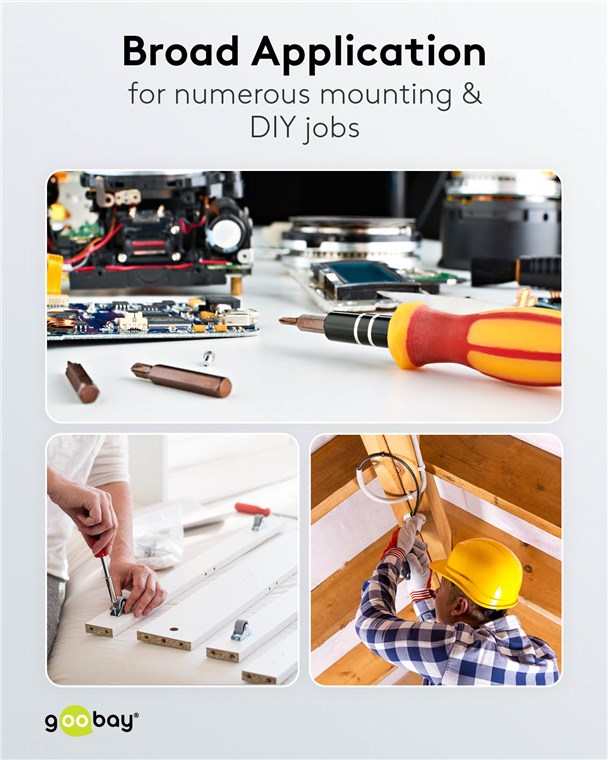 - Magnetische Spitzen erleichtern das Aufnehmen der Schraube und halten sie beim Befestigen sicher in Position