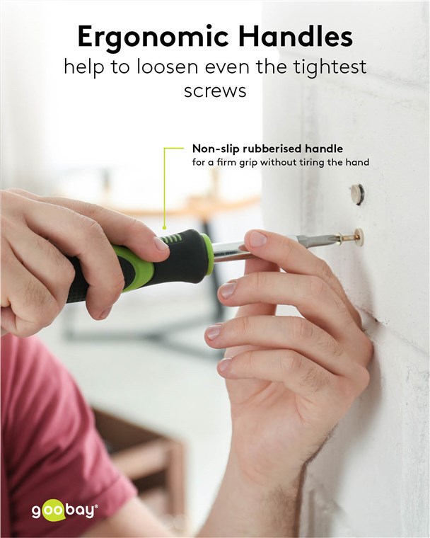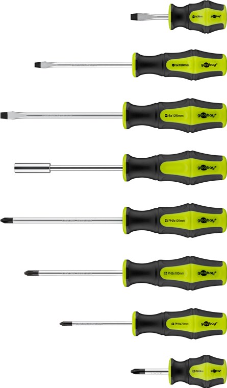 - Größe und Form sind zur besseren Orientierung auf den einzelnen Schraubenziehern vermerkt