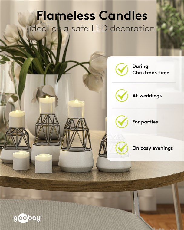 - Die absolut tropffreien, flammenlosen Kerzen sind ideal als sichere LED-Deko für Partys, Geburtstag, Hochzeit, Weihnachten, Ostern, Halloween etc.