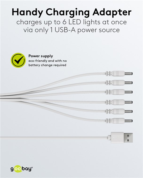 - Der praktische Ladeadapter lädt bis zu sechs LED-Lichter gleichzeitig über nur eine USB-A-Stromquelle auf (5-V-USB-Ladekabel enthalten, 1 m Länge)