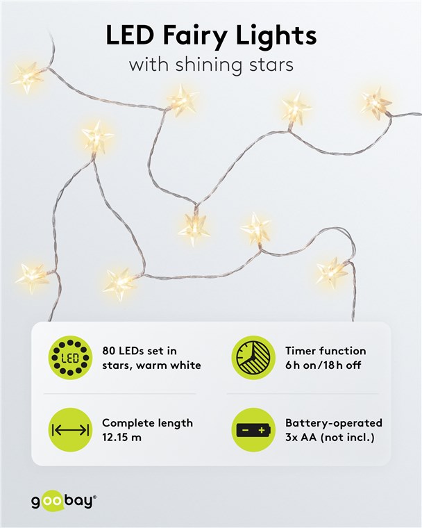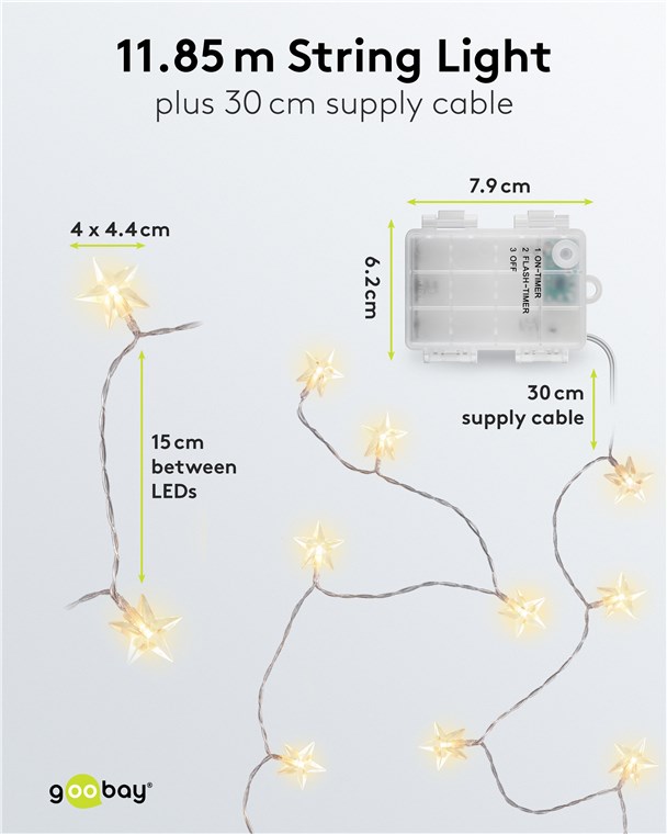 - Sternenlichterkette setzt warme, stimmungsvolle Akzente im Wohnzimmer und Schlafzimmer, z. B. als Vorhang- oder Tischdeko.