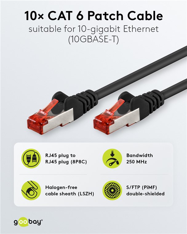 CAT 6 Patchkabel, S/FTP (PiMF), 1 m, schwarz, 10er-Set