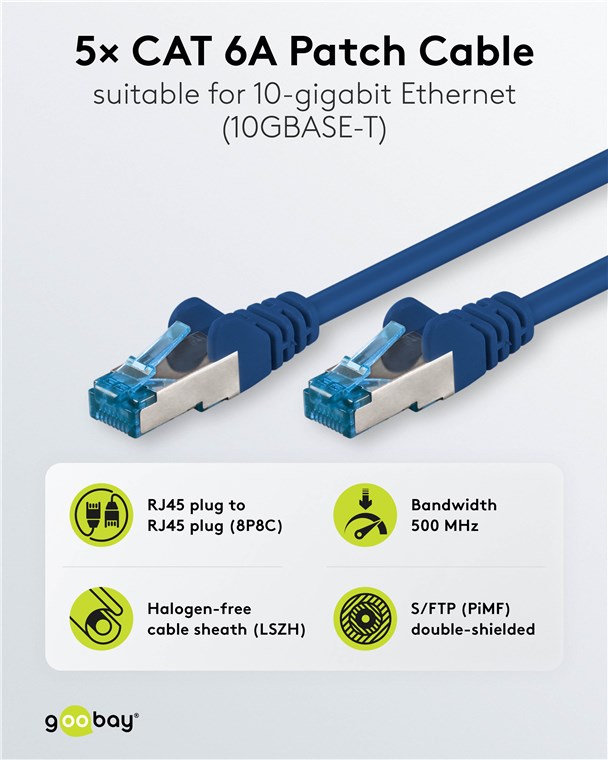 CAT 6A Patchkabel, S/FTP (PiMF), 1 m, blau, 5er-Set