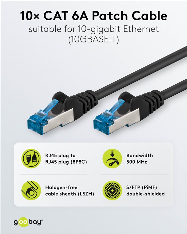 Das praktische Set mit 10 Goobay CAT-Kabeln überträgt Signale in höchster Qualität bei extremer Geschwindigkeit und stellt eine stabile Verbindung sicher. Unsere Verbindungskabel und Stecker zeichnen sich durch hochwertige Innenleiter, robuste Kabelummantelung und passgenaue Stecker aus. Bei Goobay finden Sie immer das passende Produkt für Ihre Netzwerkanwendung - sowohl für das Heim- als auch das Firmennetzwerk. Einfach. Alles. Passend!