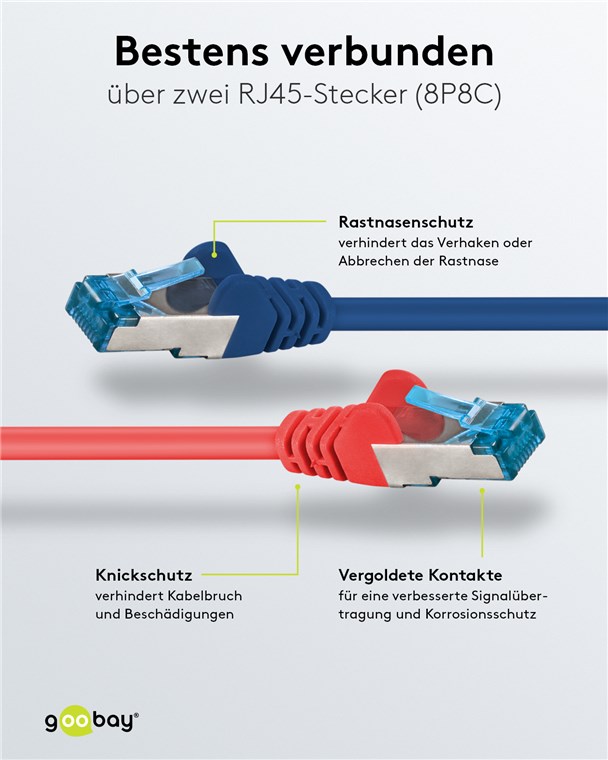 - Doppelt geschirmtes LAN-Kabel mit 2x RJ45-Anschlüssen zur Verbindung von Netzwerk-Komponenten