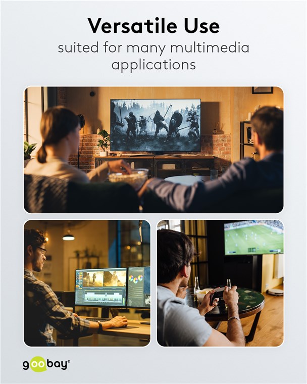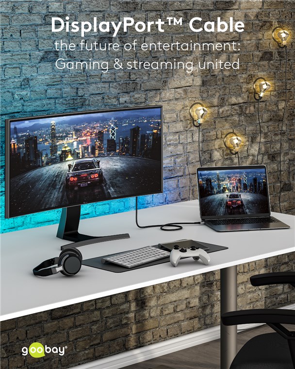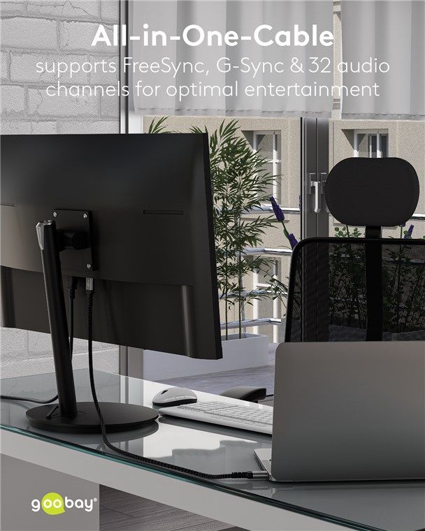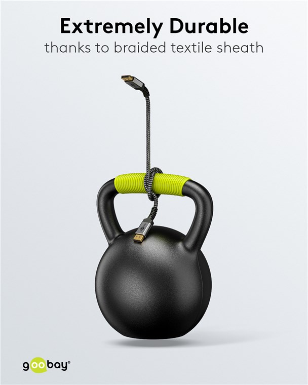 Die Goobay Plus Serie im schlanken, edlen Metalldesign in Sharkskin Grey. Mit dem DisplayPort™-1.4-Standard sorgt das Kabel für eine besonders hohe Bandbreite - für eine flüssige Bildwiedergabe ohne Bildschirm-Tearing oder Ruckeln beim Gaming und eine gestochen scharfe Auflösung mit bis zu 8K.