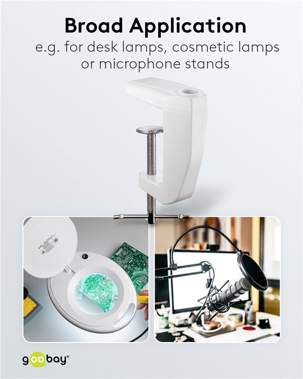- Befestigung für Lupenlampen, Schreibtischlampen oder Kosmetiklampen mit einem Dorn, die mit einer Tischklemme montiert werden