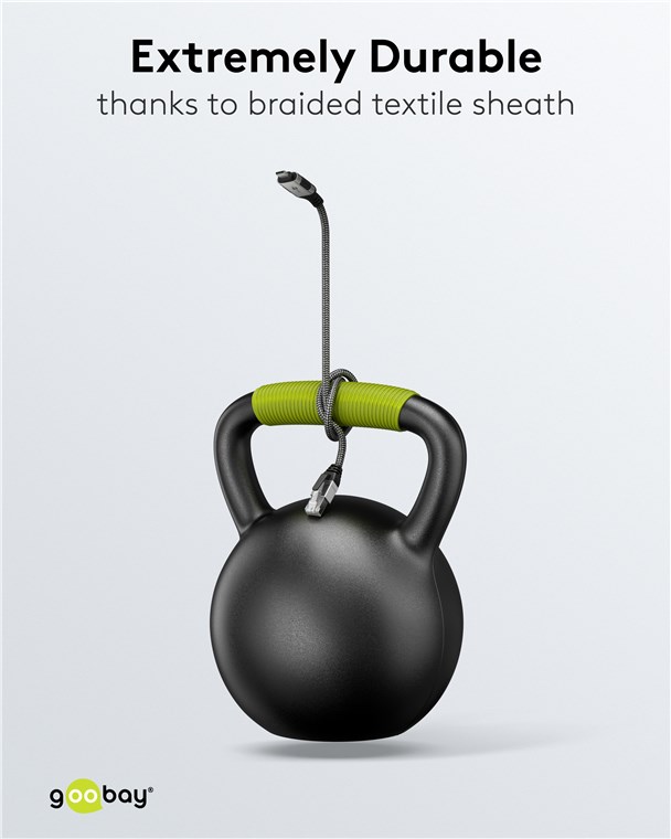 - Der geflochtene, strapazierfähige Textilmantel des USB-Kabels hat eine angenehme Haptik und ist schonend auf sensiblen Oberflächen