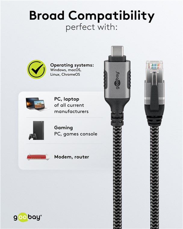 verbindet Router, Modem oder Netzwerk-Switch mit dem USB-C™-Port von Laptop, Tablet oder Smartphone