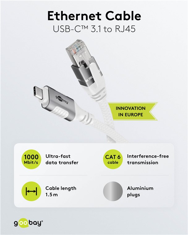 Das Technik-Upgrade für maximalen Komfort: Unser innovatives Adapterkabel ist die kompakte Ethernet-Lösung für alle USB-C™-Geräte ohne eigenen RJ45-Port. Der raffiniert im USB-Stecker verbaute Smart-Chip ersetzt die bislang immer erforderlichen, umständlichen RJ45-auf-USB-C™-Adapter. Ohne weitere Treiber ist sofort Ethernet verfügbar.