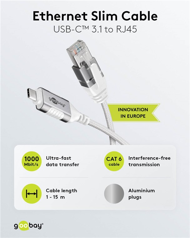 Ethernet-Kabel USB-C™ 3.1 auf RJ45, Slim, 1 m