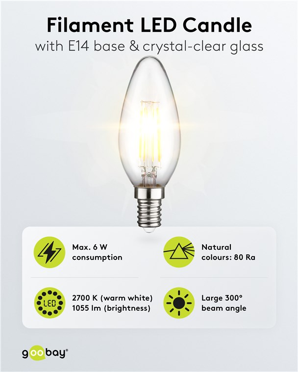 • Kristallklare E14-LED-Birne mit sehr hoher Lebensdauer