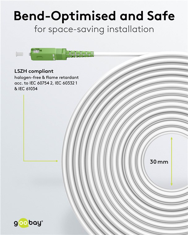 Das Patchkabel eignet sich für private und industrielle Anwendungen, inkl. Glasfaser bis in die Wohnung (Fibre to the Home, FTTH), und ist kompatibel mit dem FTTH-Angebot von Telekom Deutschland, Vodafone, Deutsche Glasfaser etc. Die biegeoptimierte LWL-Faser ermöglicht eine platzsparende Verlegung, ohne dabei die Dämpfung zu erhöhen und so Störungen zu riskieren.