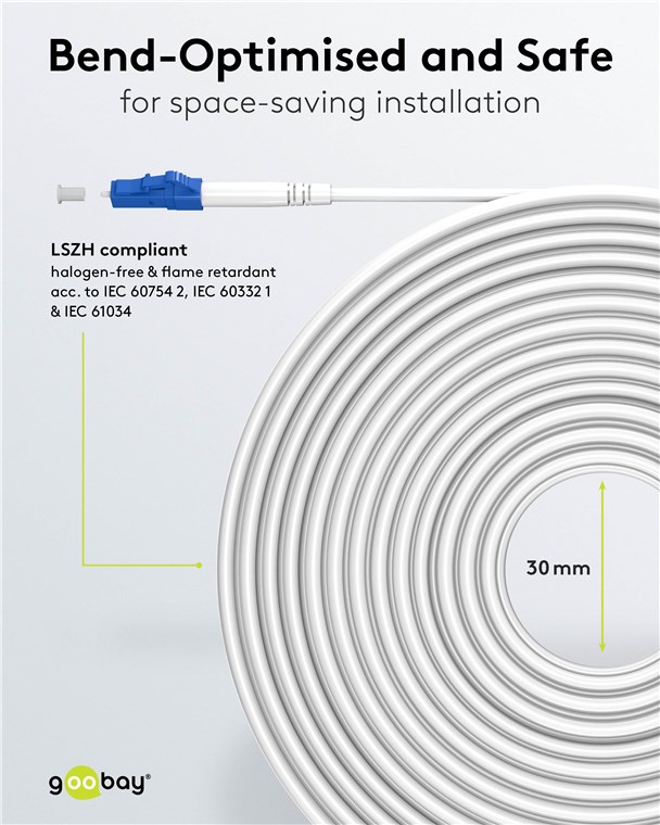 Das Patchkabel eignet sich für private und industrielle Anwendungen, inkl. Glasfaser bis in die Wohnung (Fibre to the Home, FTTH), und ist kompatibel mit dem FTTH-Angebot von Telekom Deutschland, Vodafone, Deutsche Glasfaser etc. Die biegeoptimierte LWL-Faser ermöglicht eine platzsparende Verlegung, ohne dabei die Dämpfung zu erhöhen und so Störungen zu riskieren.