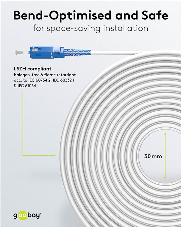 Das Patchkabel eignet sich für private und industrielle Anwendungen, inkl. Glasfaser bis in die Wohnung (Fibre to the Home, FTTH), und ist kompatibel mit dem FTTH-Angebot von Telekom Deutschland, Vodafone, Deutsche Glasfaser etc. Die biegeoptimierte LWL-Faser ermöglicht eine platzsparende Verlegung, ohne dabei die Dämpfung zu erhöhen und so Störungen zu riskieren.