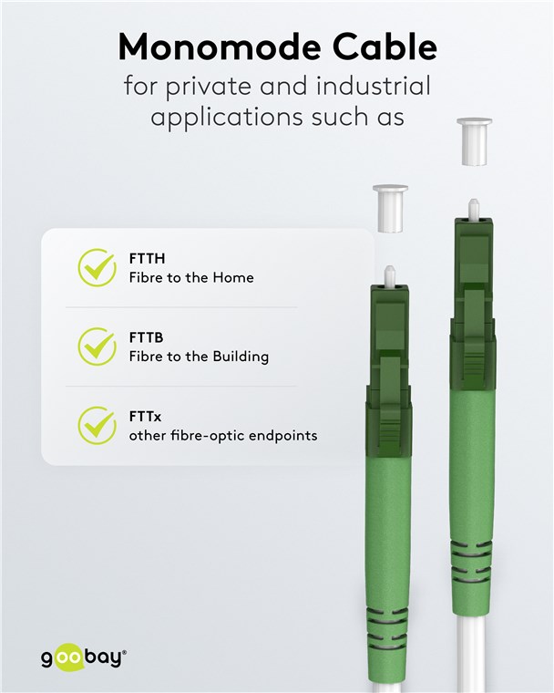 Das Patchkabel eignet sich für private und industrielle Anwendungen, inkl. Glasfaser bis in die Wohnung (Fibre to the Home, FTTH), und ist kompatibel mit dem FTTH-Angebot von Telekom Deutschland, Vodafone, Deutsche Glasfaser etc. Die biegeoptimierte LWL-Faser ermöglicht eine platzsparende Verlegung, ohne dabei die Dämpfung zu erhöhen und so Störungen zu riskieren.