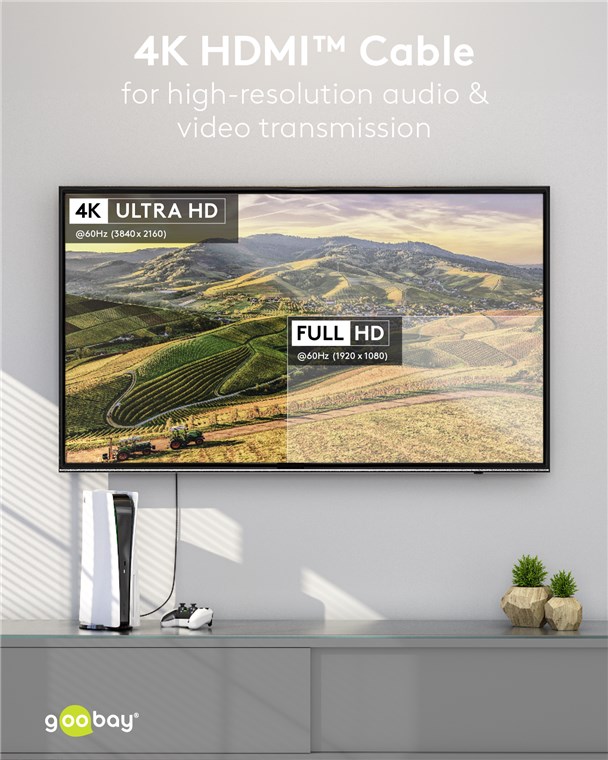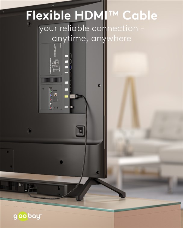 - Der geflochtene Textilmantel des Goobay-4K-Kabels sorgt für eine angenehme Haptik und ist schonend auf sensiblen Oberflächen