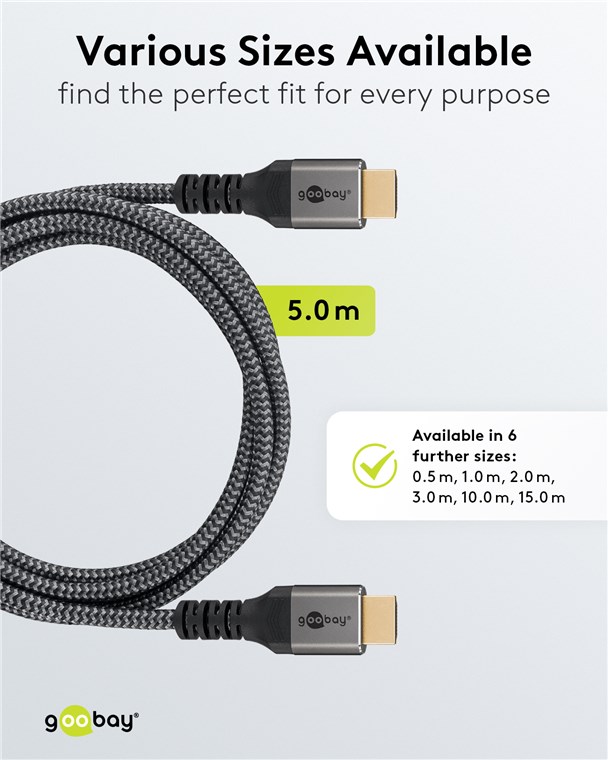 - Der geflochtene Textilmantel des Goobay-4K-Kabels sorgt für eine angenehme Haptik und ist schonend auf sensiblen Oberflächen