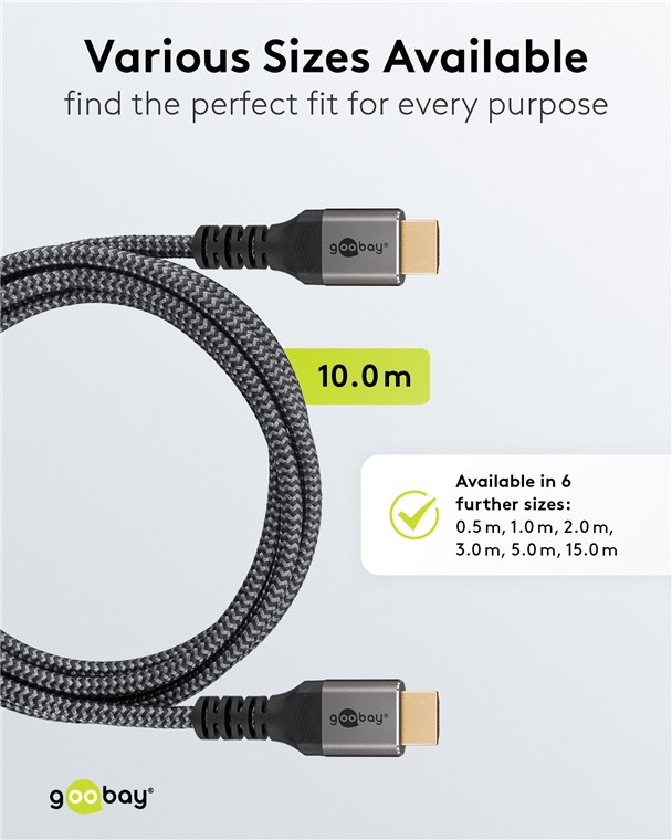 • Der geflochtene Textilmantel des Goobay-4K-Kabels sorgt für eine angenehme Haptik und ist schonend auf sensiblen Oberflächen