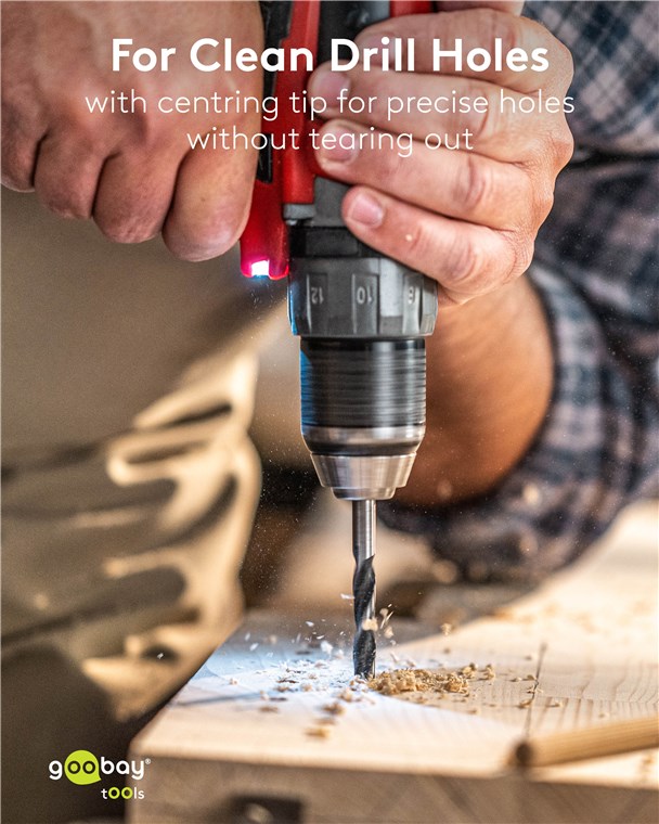 - Mit Zentrierspitze für exaktes Positionieren und eine präzise Führung beim Arbeiten, sodass das Bohrloch nicht ausreißt
