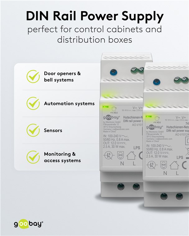 • Das 12-V-Netzteil eignet sich als Klingeltrafo, zum Betrieb von Überwachungs- und Zugangssystemen, Türöffnern, Türsprechanlagen, Klingelanlagen, etc.