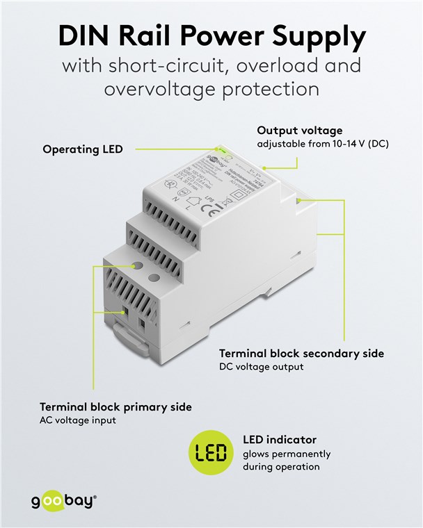 • Das Schaltnetzteil ist besonders sicher dank Überspannungs-, Überlast- und Kurzschlussschutz, Schutzart IP20 und sicherer elektronischer Trennung nach Schutzklasse II