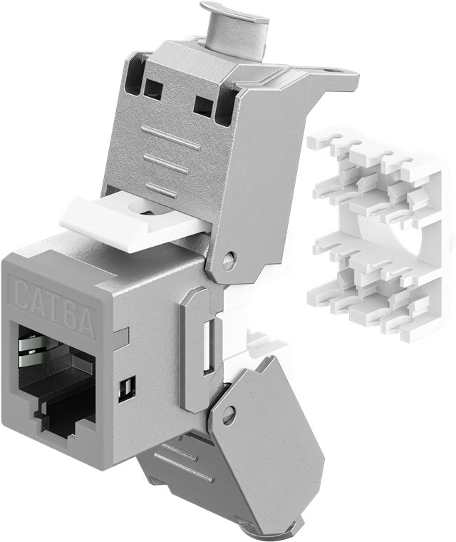 Keystone-Modul RJ45 CAT 6A, STP, Slim, hellgrau