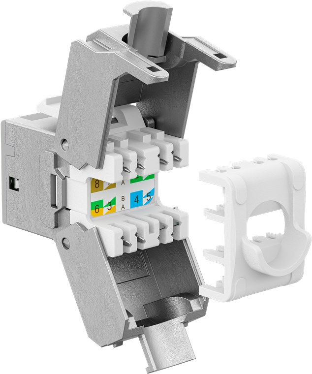 - Die feldkonfektionierbare RJ45-Buchse ist für Volldraht (solid) und für Litzendraht (stranded) geeignet
