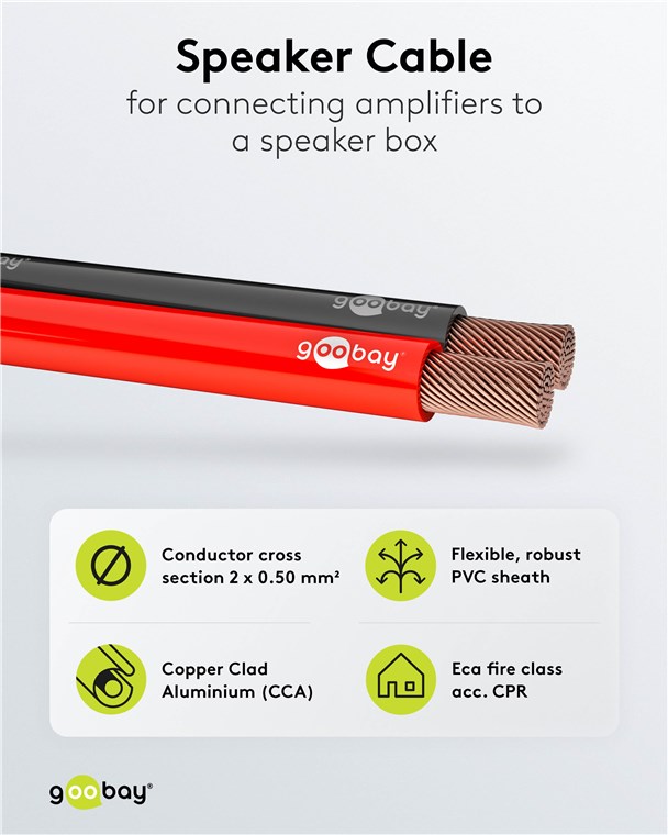 - Als Meterware geliefert, kann das Goobay-Hi-Fi-Lautsprecherkabel für den jeweiligen Einsatz selbst konfektioniert werden.