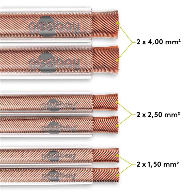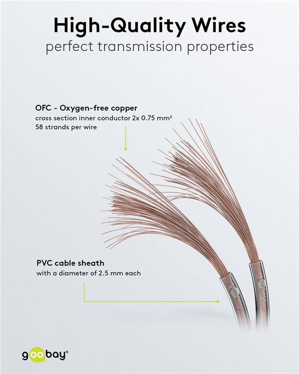 • Als Meterware geliefert, kann das Goobay-Hi-Fi-Lautsprecherkabel für den jeweiligen Einsatz selbst konfektioniert werden.