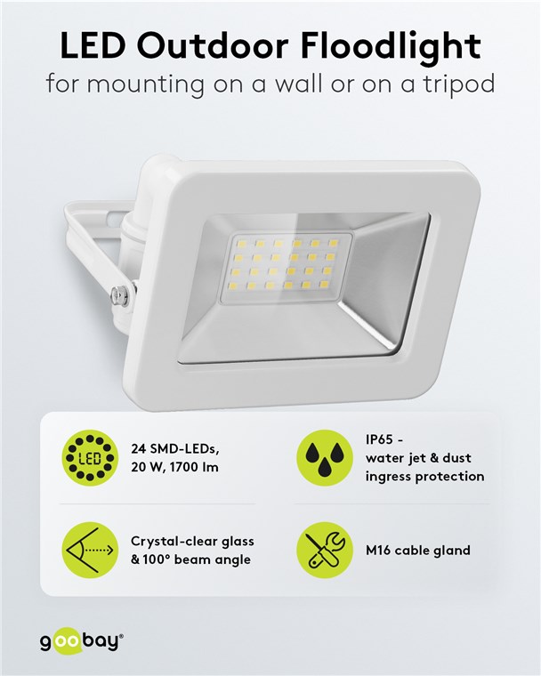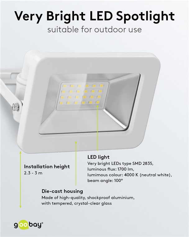 - LED-Außenbeleuchtung mit großem 100°-Abstrahlwinkel ist ideal als Gartenstrahler oder zur Beleuchtung von Fassaden geeignet.