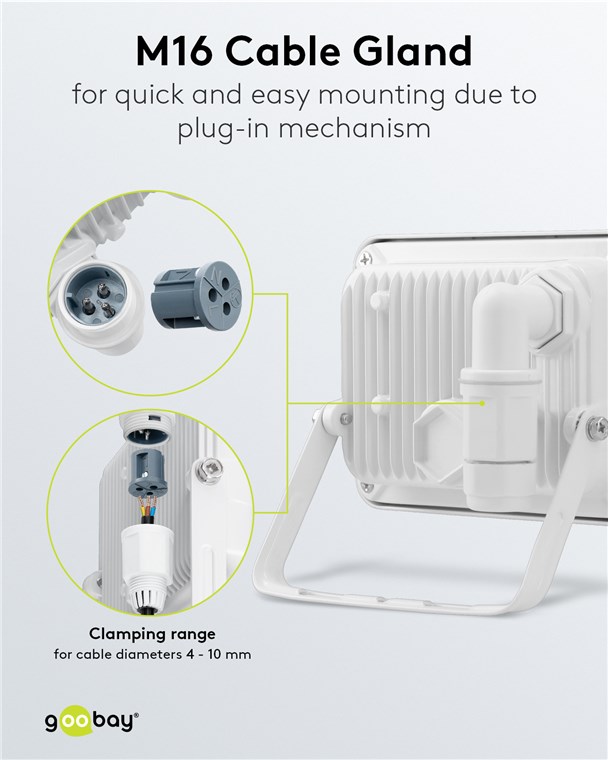 - Schnelle und einfache Montage dank praktischer M16-Kabelverschraubung mit Steckfunktion für Klemmbereich, Kabeldurchmesser 4-10 mm