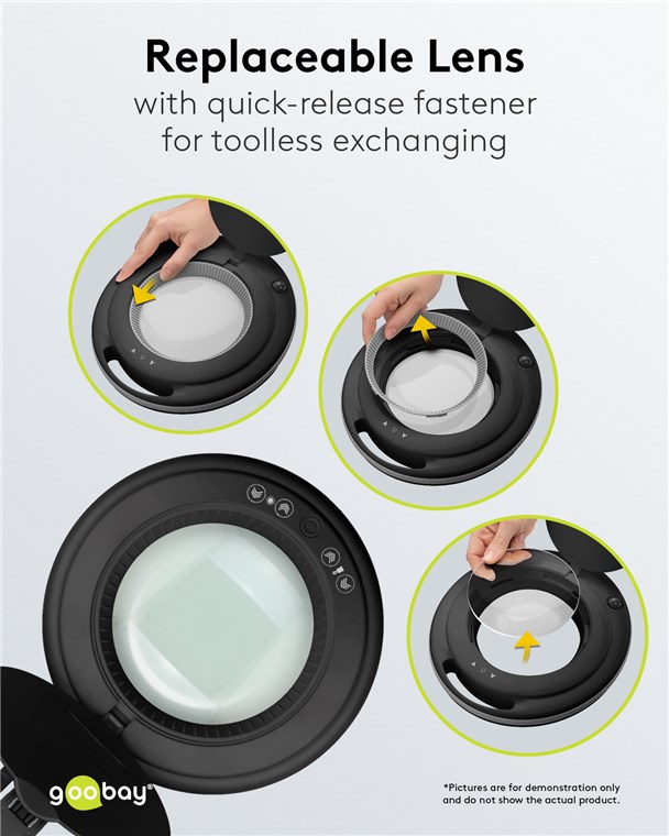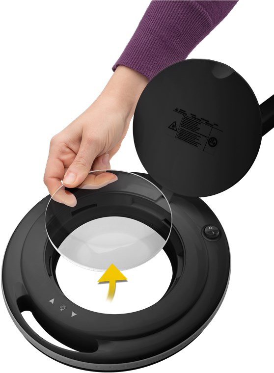 • Kosmetiklampe mit Standard-Glaslinse (inkl. Schutzkappe) mit 3 Dioptrien und 1,75-facher Vergrößerung, dank Schnellverschluss werkzeugfrei austauschbar