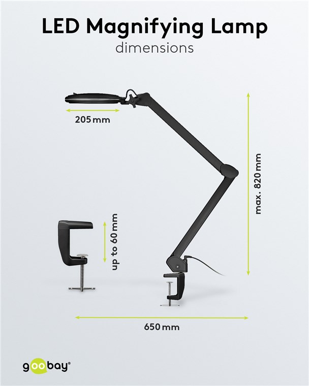 • Ideal geeignet auch als Tischlupe, Schreibtisch-, Zeichen- oder Leselampe mit Klemme