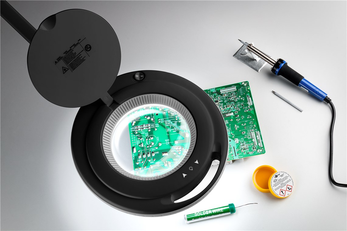 - Lupe mit Licht ist universell einsetzbar, z. B. in der Kosmetik, als Lesehilfe oder bei Präzisionsarbeiten wie Löten und Basteln.