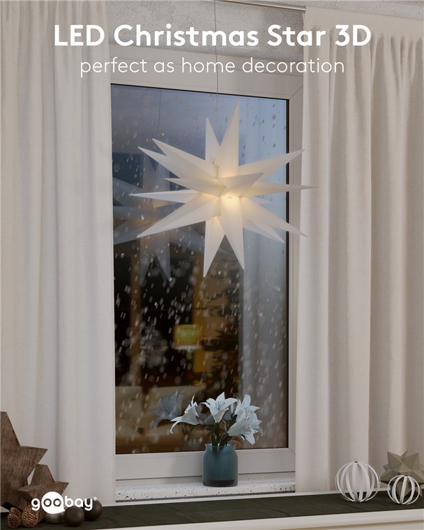 • Als Weihnachtsdeko für innen und außen sorgt der LED-Stern für eine stimmungsvolle Atmosphäre in der Wohnung, im Fenster, Baum, Garten oder auf dem Balkon