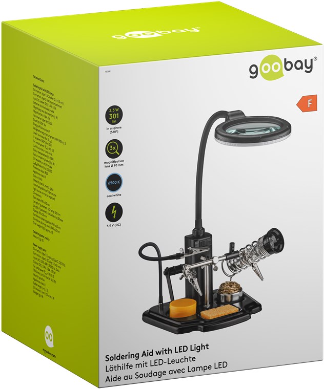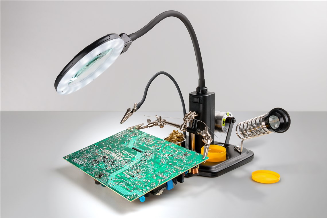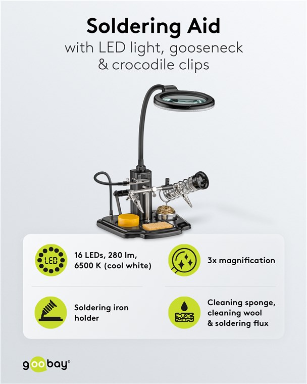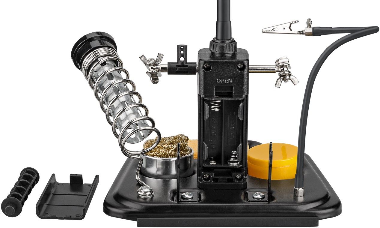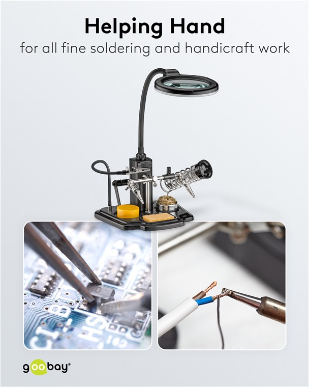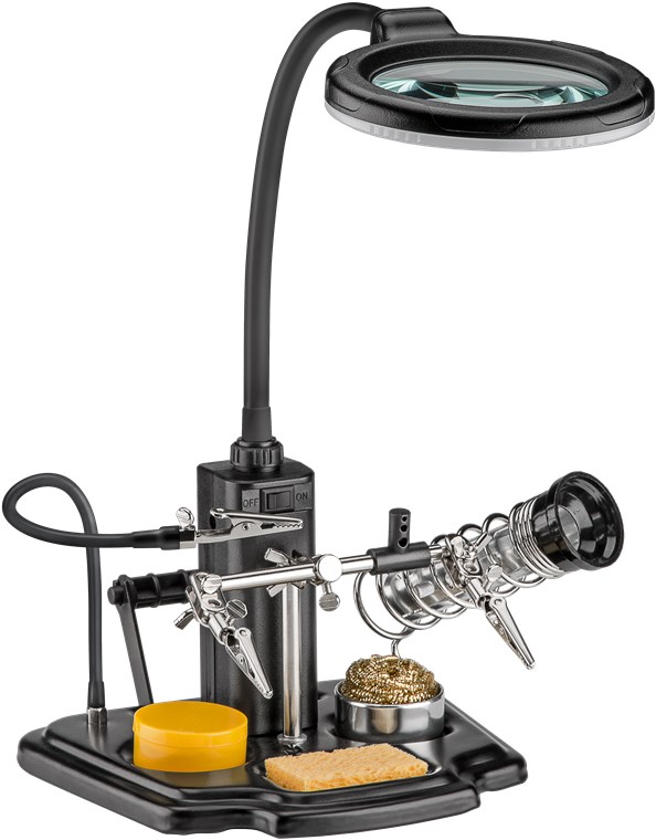 Löthilfe mit Lupenleuchte & Schwanenhals-Krokodilklemme
