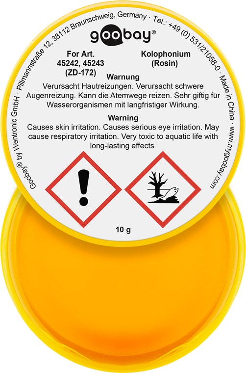 - Lötfett: 1x Dose Kolophonium, 10 g Flussmittel zum Weichlöten