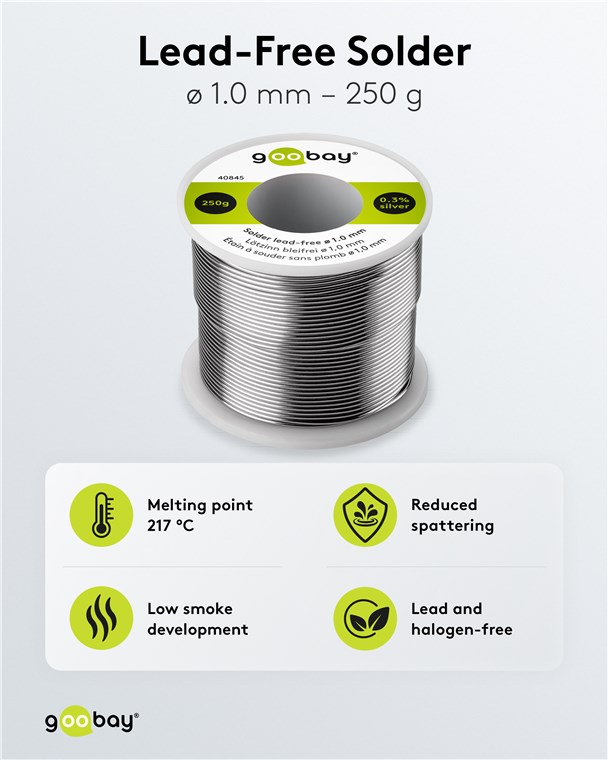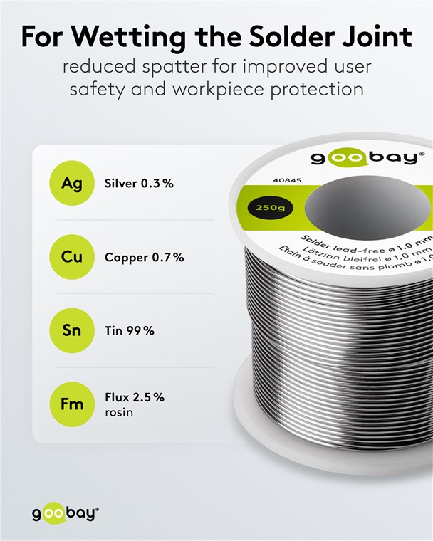 - Flussmittelgefüllter Lötdraht mit einem Durchmesser von 1 mm, ideal z. B. für das Löten von Elektronik