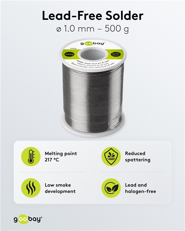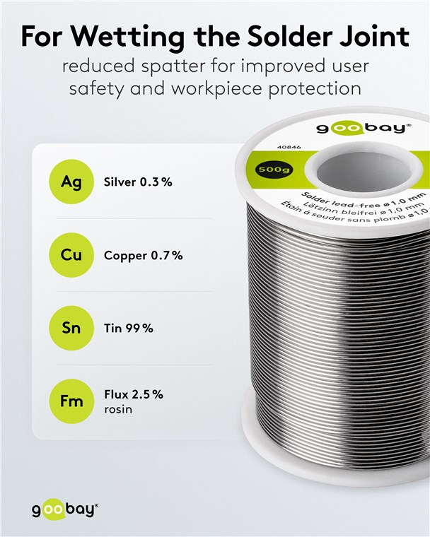 - Flussmittelgefüllter Lötdraht mit einem Durchmesser von 1 mm, ideal z. B. für das Löten von Elektronik