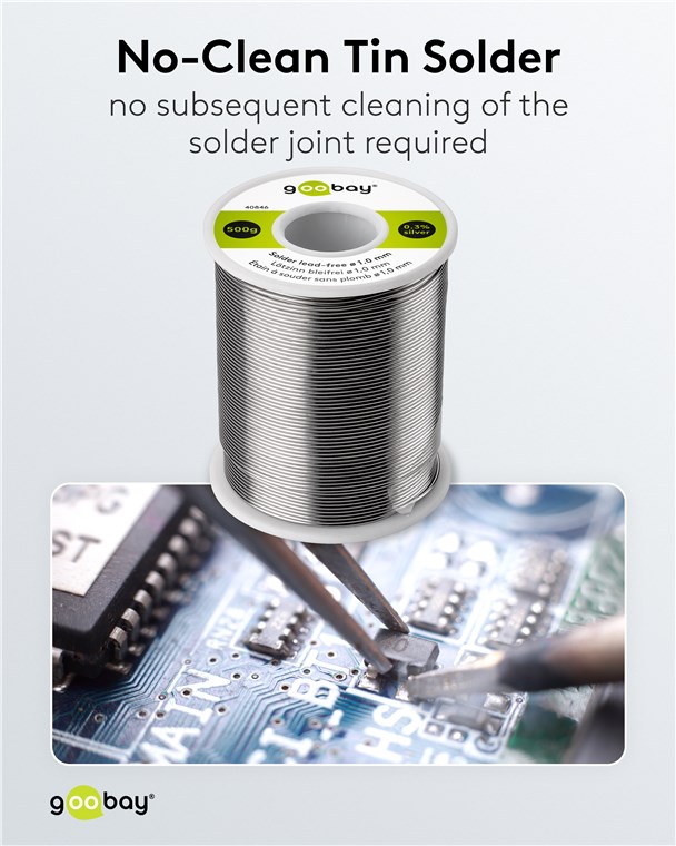 Alles im Flow: Mit dem schmalen Durchmesser ist das Zinn einfach zu dosieren und ideal für Präzisionsarbeiten geeignet, z. B. für Lötarbeiten an elektrischen Bauteilen und Geräten wie Leiterplatten, Platinen, SMDs, DIP, Kabel, Fernseher, Kopfhörer oder Mikrofone. Das eingearbeitete No-Clean-Flussmittel ist besonders komfortabel, da du es nach dem Löten nicht extra von der Lötstelle entfernen musst.