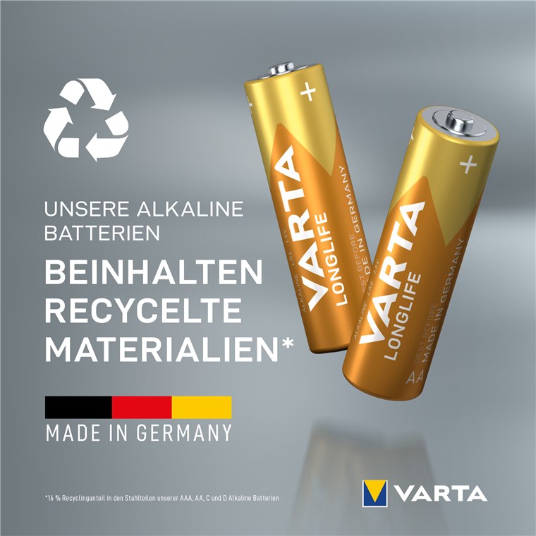 - Die AA-Batterien sind ein Markenprodukt mit hoher Qualität („Made in Germany“).