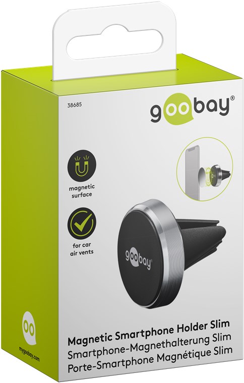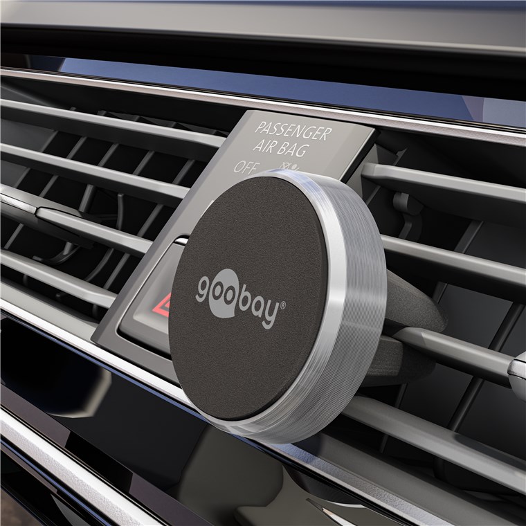 - Die Goobay Magnet-Handyhalterung fürs Auto besteht aus 1x Adapter zur Befestigung an den Lüftungsschlitzen und 2x Metallplatten für das Handy.