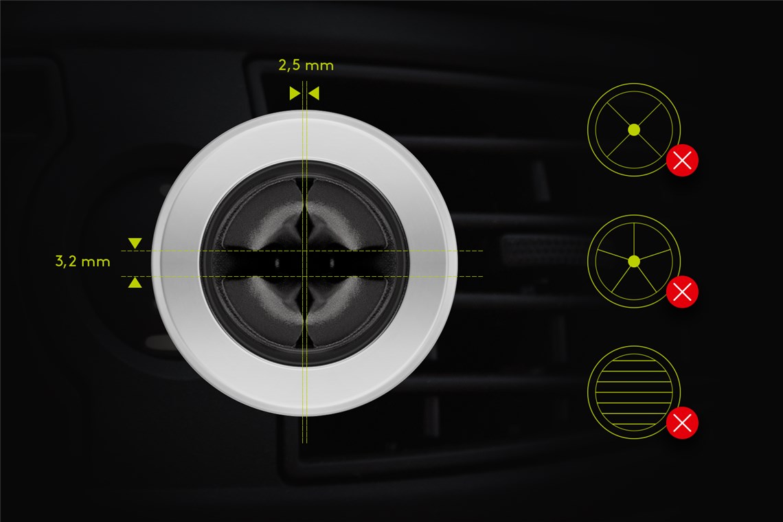 - Durch die Quick-Snap-Technologie lässt sich der Handyhalter einfach und stabil an der Lüftung anbringen.