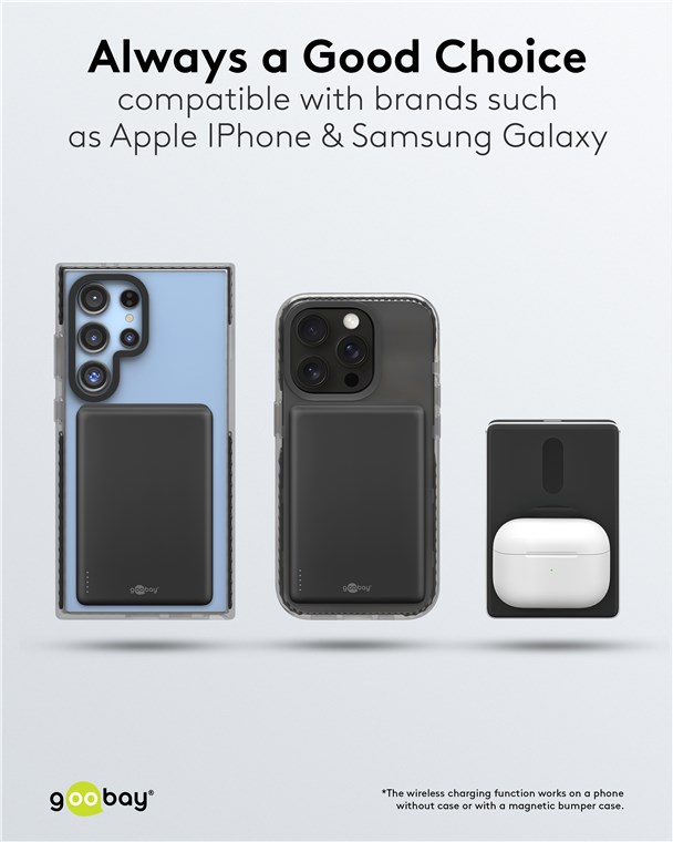 • Super-slim Powerbank zum induktiven Laden von Smartphones, Smartwatches oder Kopfhörern mit bis zu 15 W