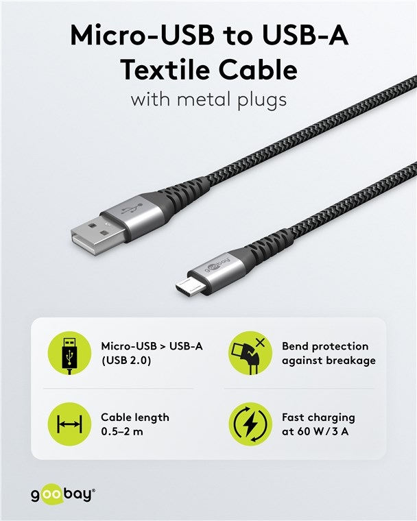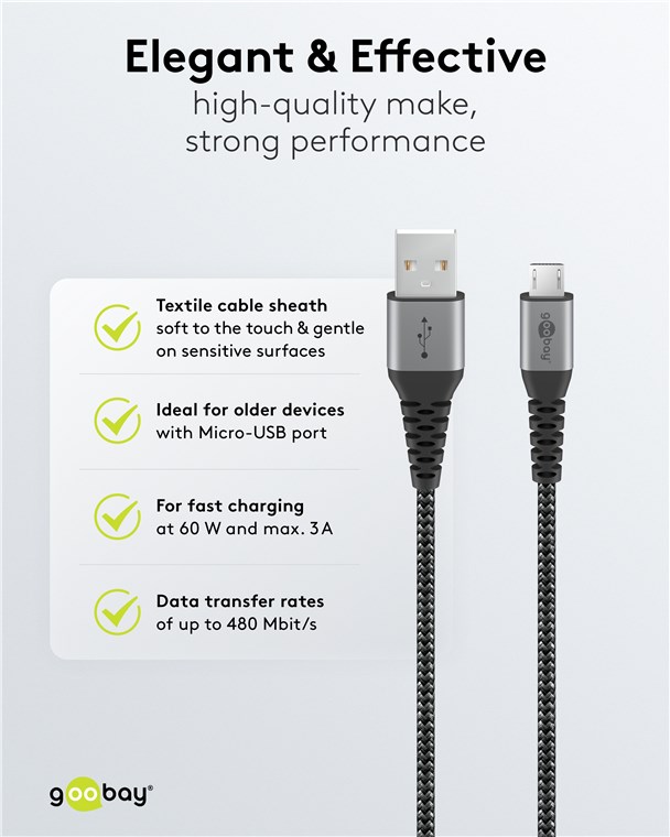 • Das Goobay Micro-USB-Ladekabel für schnelles Laden mit maximal 3 A.